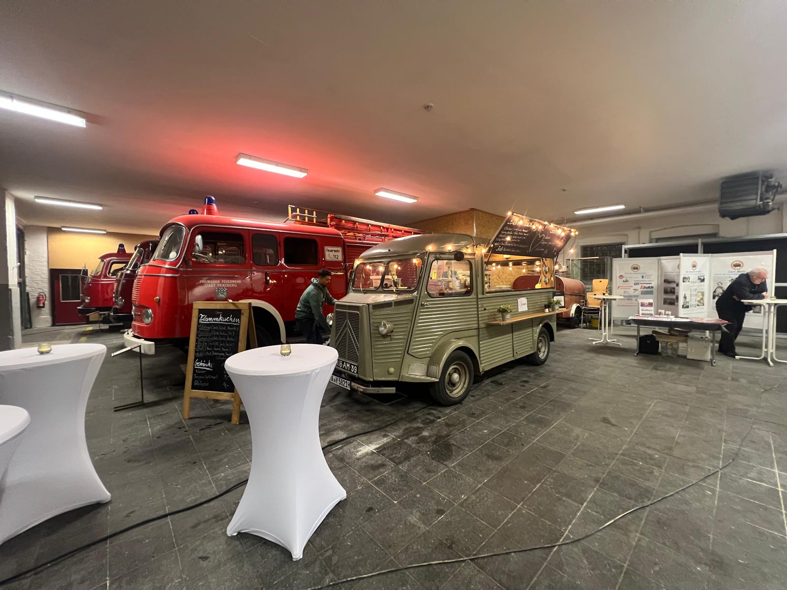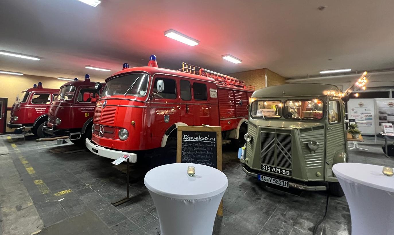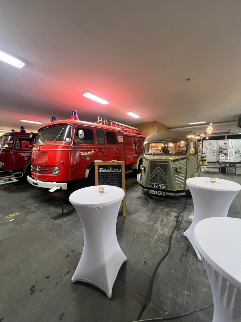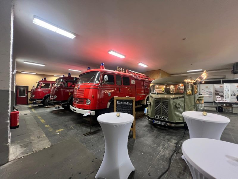 Als Mitglied des Kurpfälzer Verein für Feuerwehrgeschichte wurden Torsten zu seinem Ehrentag freundlicherweise die „heiligen Hallen“ des Vereins überlassen – ein wunderbarer Ort für Technikfans und Liebhaber historischer Feuerwehrautos. Besonders spannend: Auf diesem Gelände zwischen Mannheim und Heidelberg befand sich einst die erste Autobahntankstelle Deutschlands.