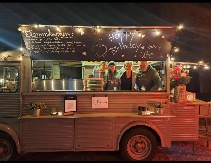 Natürlich durfte auch der Genuss nicht fehlen. Während sich die Gäste unterhielten und den Abend genossen, kamen unsere Coeurs-Flammkuchen frisch aus dem Ofen auf den Tisch.