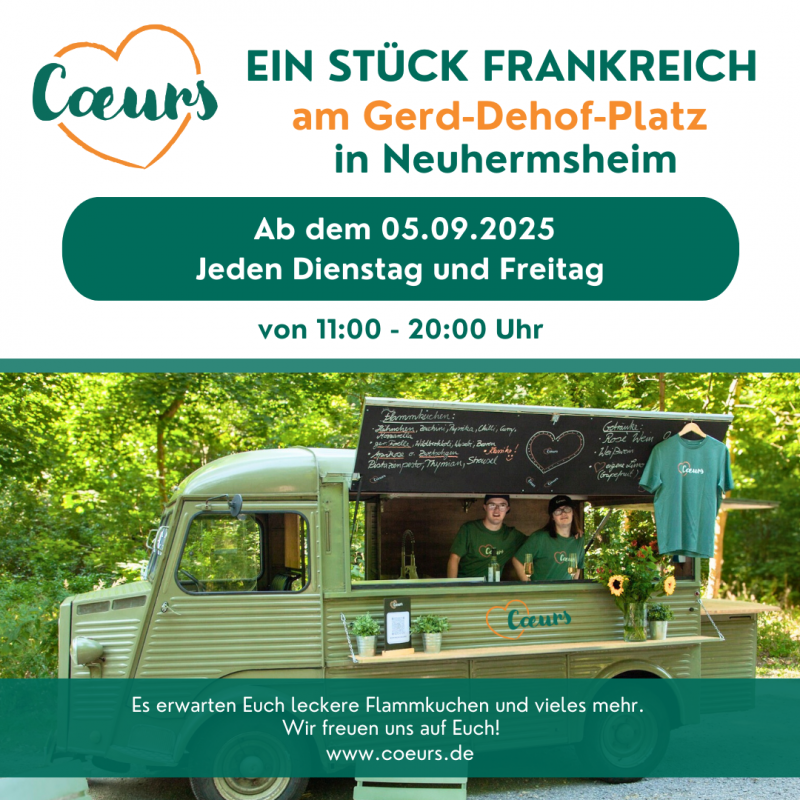 Ab Freitag, den 5.9.2025, sind wir dienstags und freitags auf dem Gerd-Dehof-Platz in Neuhermsheim.