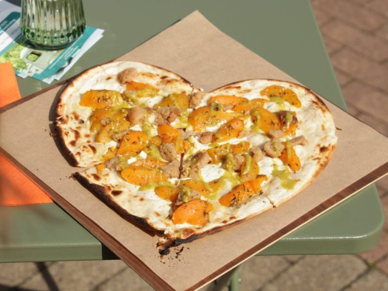 Wir verarbeiten Bio Dinkel-Mehl, verwenden wenig Salz und keine Hefe, wodurch wir eine außergewöhnliche Bekömmlichkeit erreichen. Hinzu kommen hochwertige, überwiegend saisonale und regionale Zutaten für die Toppings