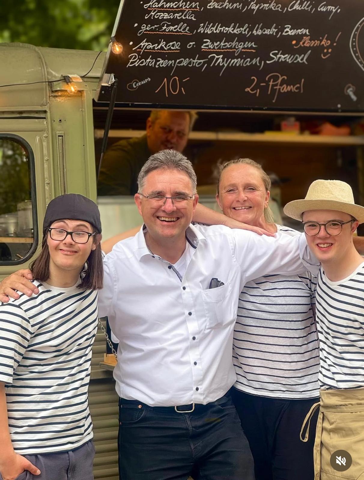 Ein echtes Highlight waren auch unsere neuen, im Corporate Design gestalteten Tische und Stühle, die für ein stimmiges Gesamtbild sorgten. Im Einsatz waren auch Samuel und Sebastian, die zunächst an der Kasse unterstützten und später mit viel Charme und Engagement beim Servieren der Flammkuchen glänzten. Großes Kompliment an euch beide – charmanter geht’s nicht!